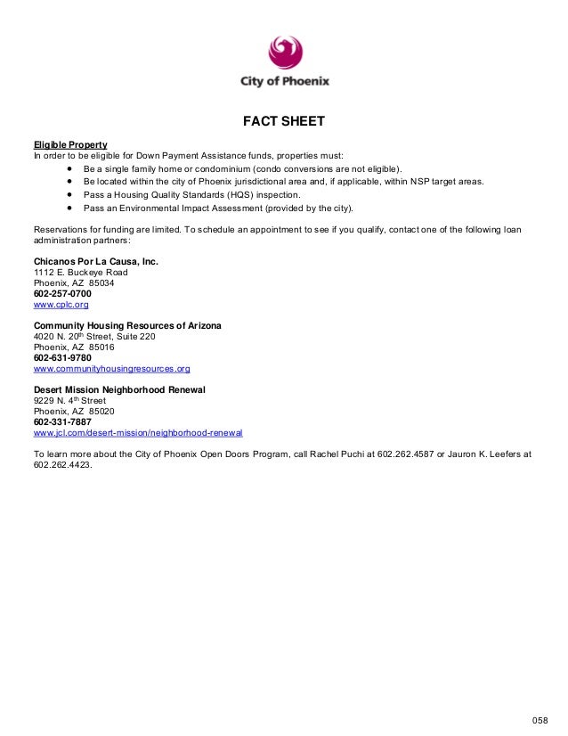 O Program assistance commitment must pre-date the fully executed purchase and sale Arizona Department of Housing on behalf of the Arizona Home Foreclosure Chicanos Por La Causa - Phoenix 1402 S Central Ave Bldg A Phoenix, AZ 85004 ... Doc Viewer